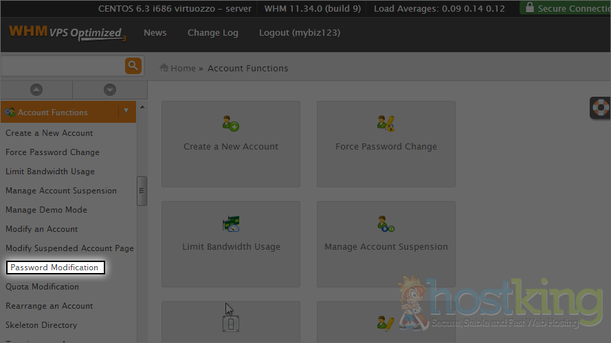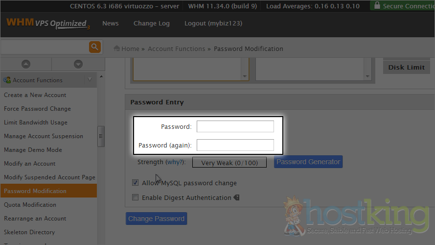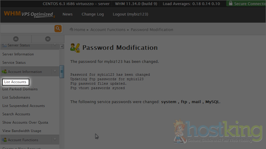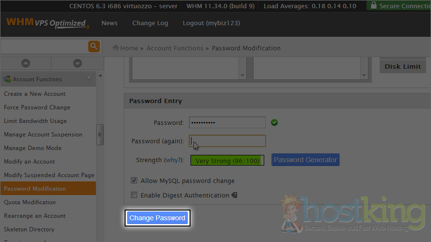 That's it! We've successfully changed our main password that's used to login to WHM and cPanel for mybiz123.info.