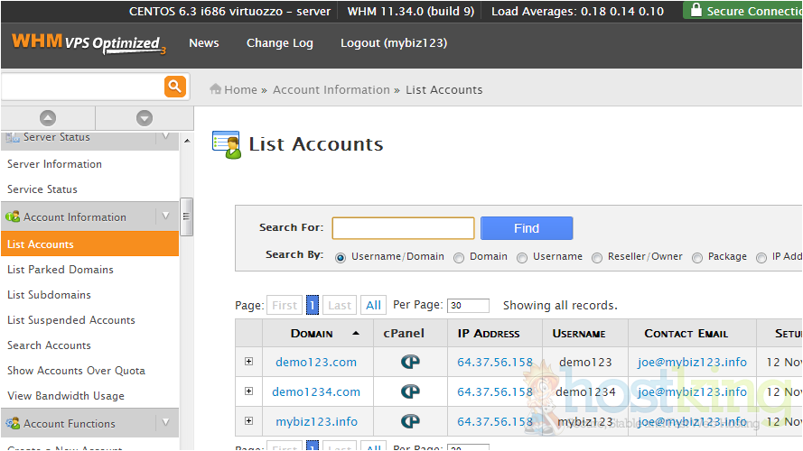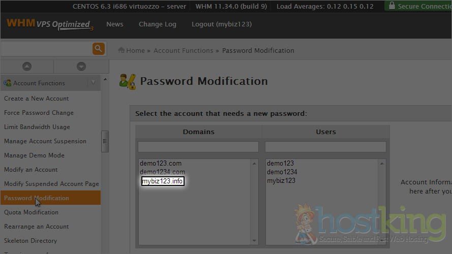 In this tutorial, our main account is mybiz123.info so let's go ahead and change it's password.