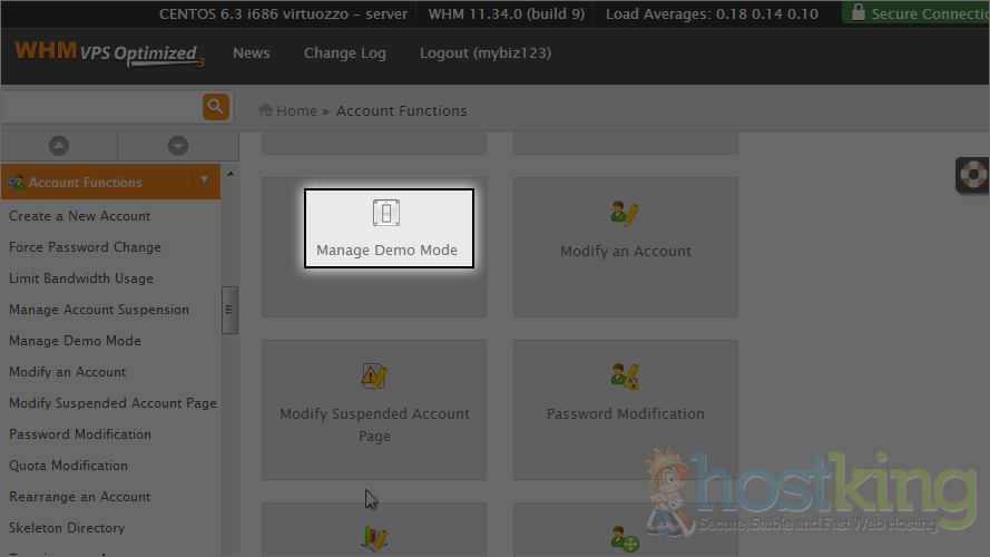 That's it! Demo mode has been enabled, meaning that when a user logs in to this account's cPanel, certain functions will be disabled.