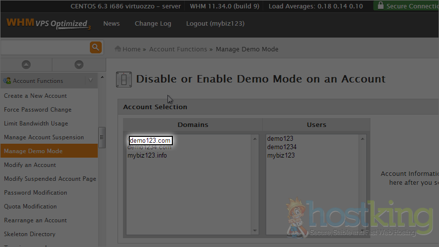 3) Select demo123.com as the account we want to convert into a demo account.