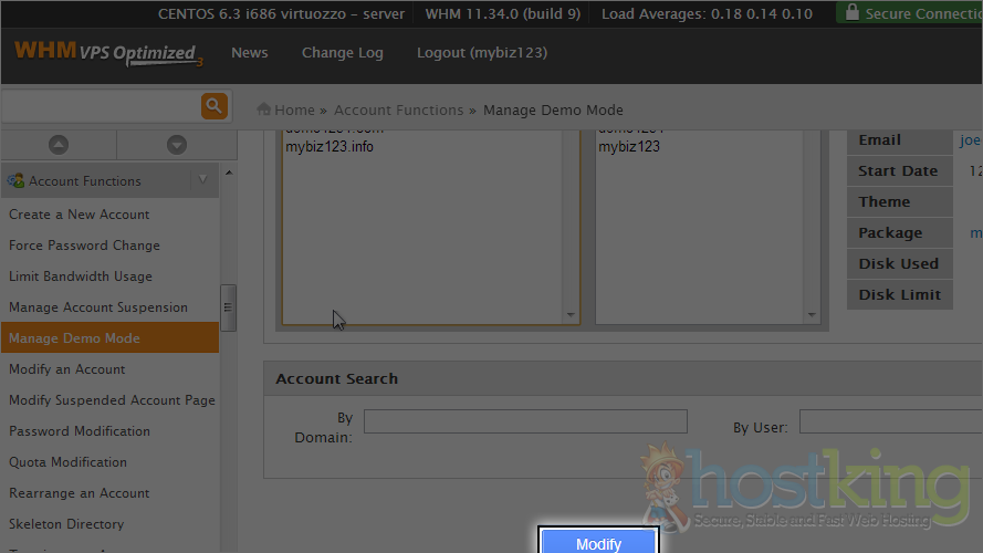 This demo assumes you've already logged in to WebHost Manager (WHM).