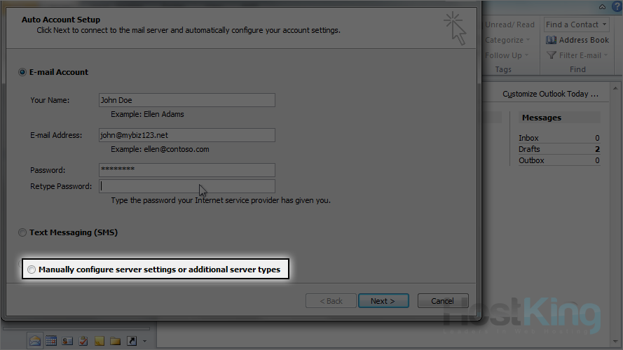6) Click here to manually configure your mail server settings.