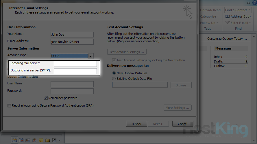 10) Then enter the incoming and outgoing mail server addresses.