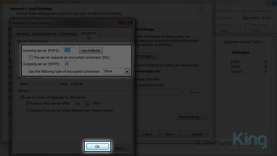 13) Click the "Outgoing Server" tab.