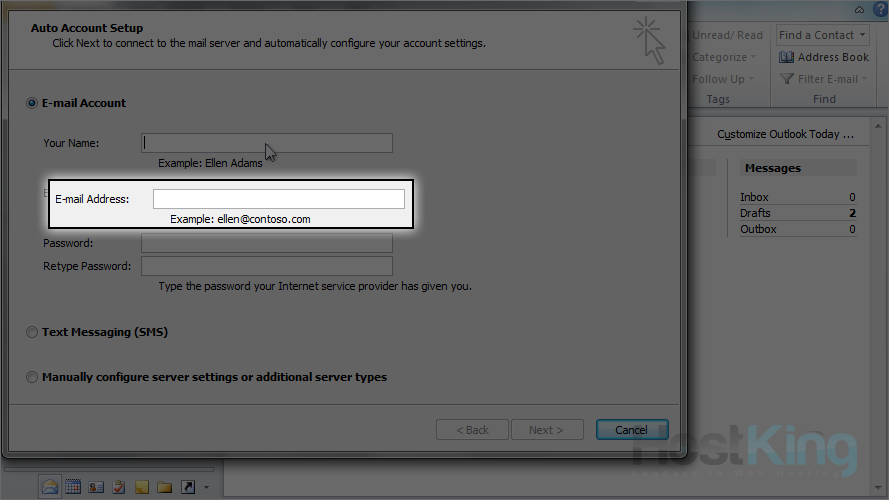 8) Ensure the "Internet E-mail" option is selected, then click "Next" again.