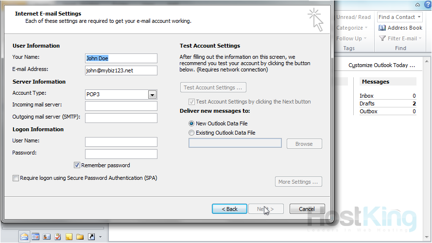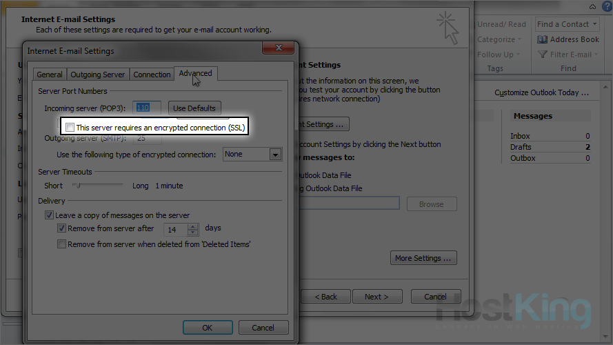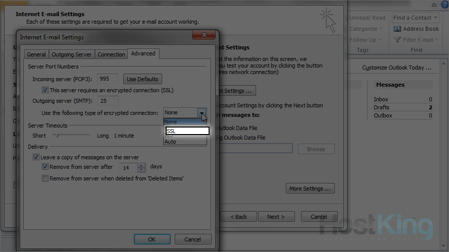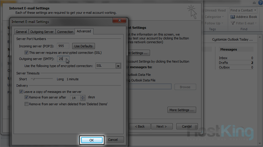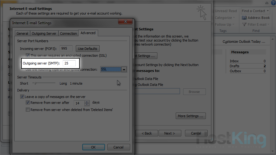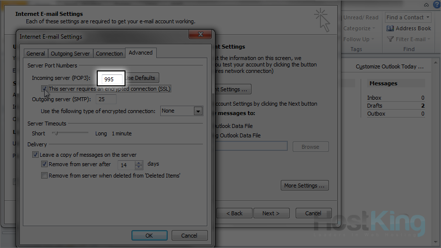 Note that by doing so the port number changed to 995, the default email port for SSL.