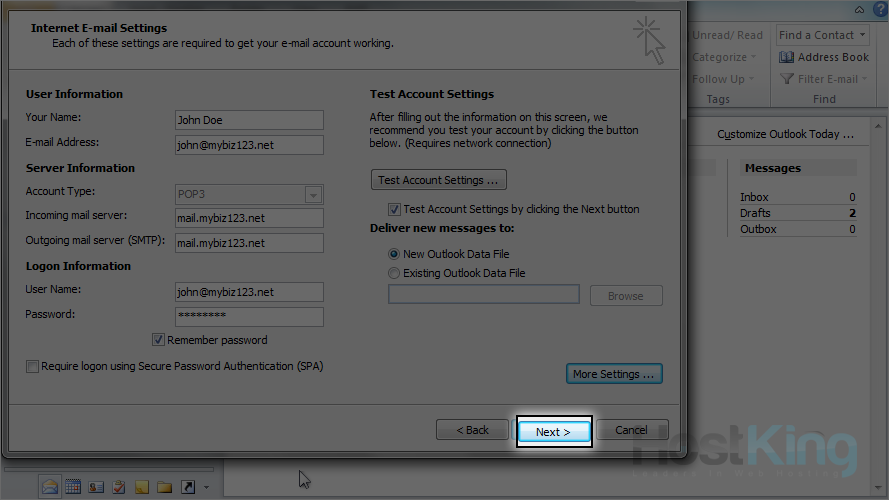 This is the end of the tutorial. You now know how to configure a POP email account with SSL in Outlook 2010.