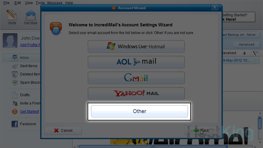5) Choose "Other" as the email account type you wish to setup.