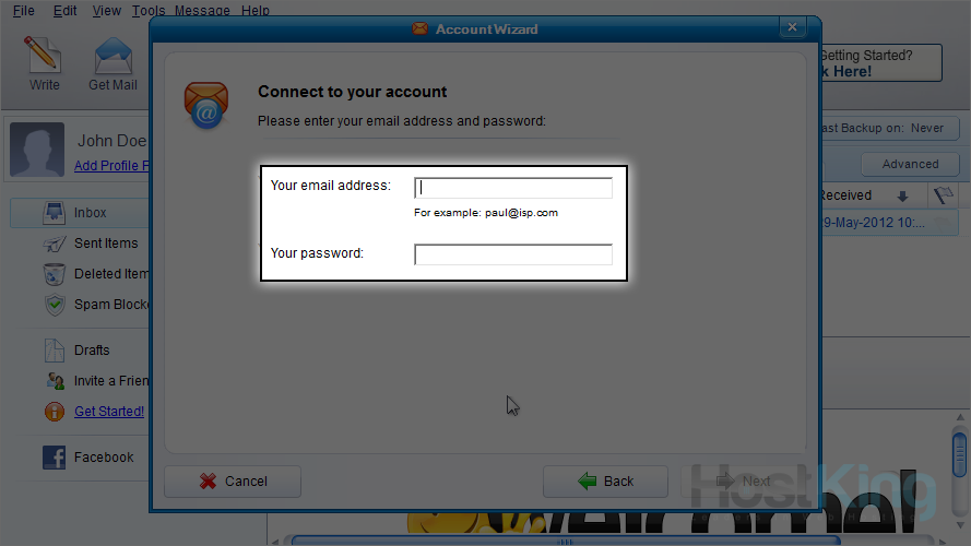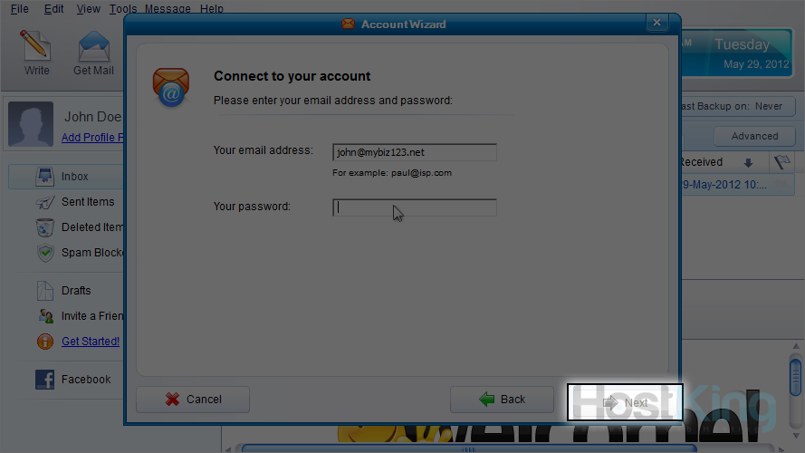 6) Enter the email address you want to configure, and its password.