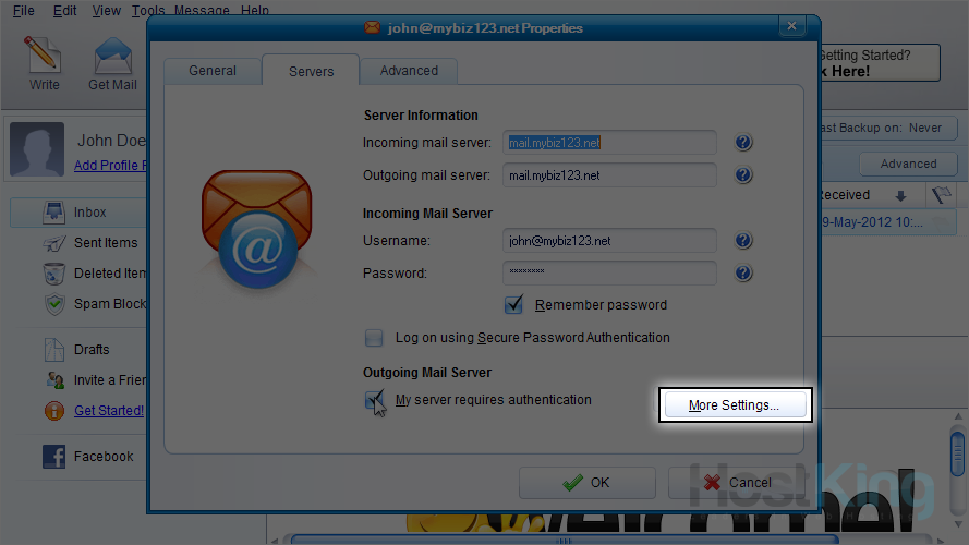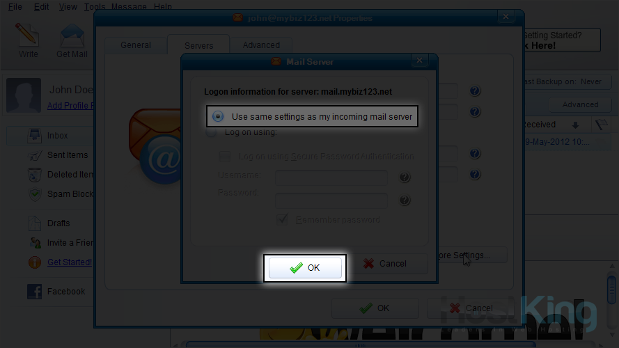 16) Ensure it's set to use the same settings as your incoming server, then click "OK".