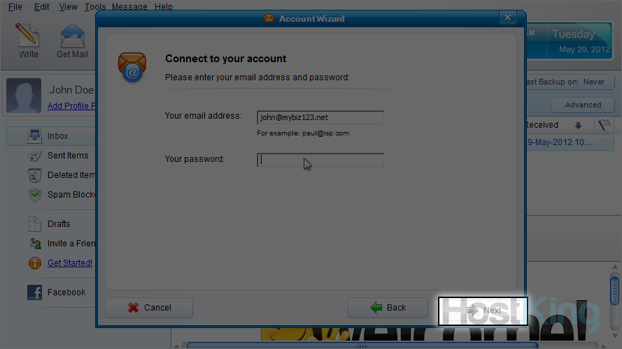 6) Enter the email address you want to configure, and its password.