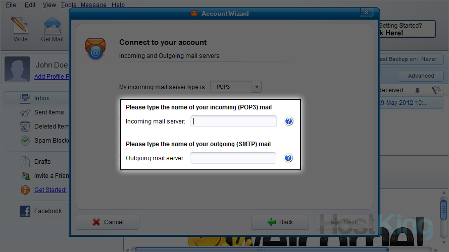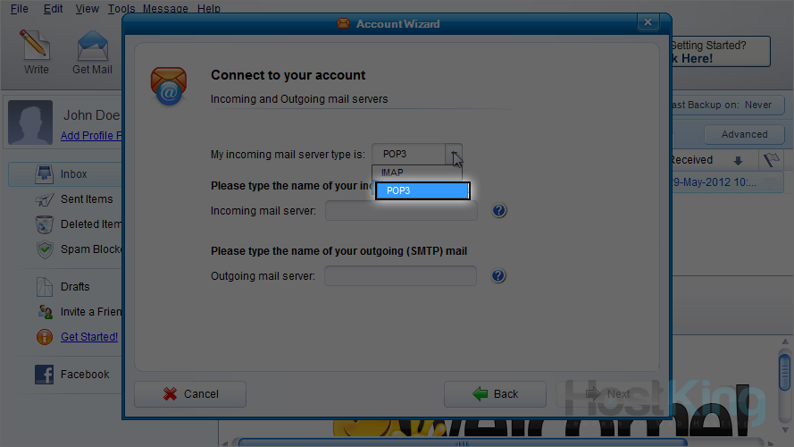 8) Ensure "POP3" is selected as the server type.