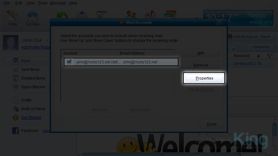 12) With the new account selected here, click the "Properties" button.