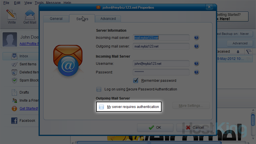 16) Ensure it's set to use the same settings as your incoming server, then click "OK".