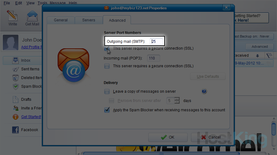 19) Be sure to enter 465 for the secure port number.