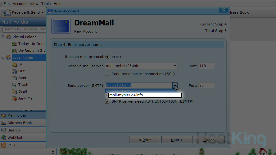 Let's change the outgoing server to the same: mail.mybiz123.info.