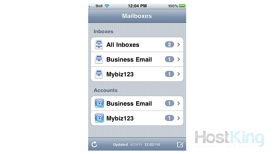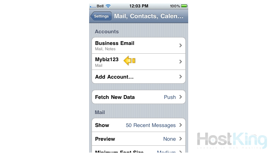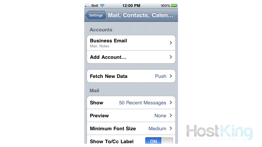 Success! The POP email account has been setup on the iPhone, and you can see it here listed under "Accounts".