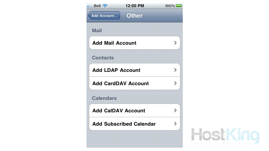 5) Press "Add Mail Account".