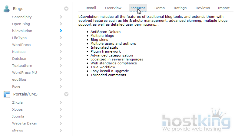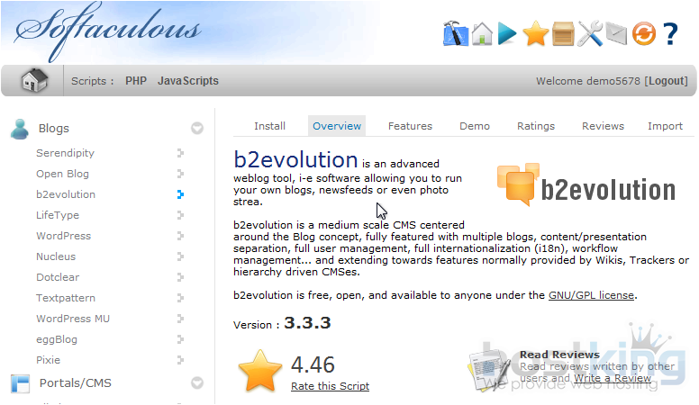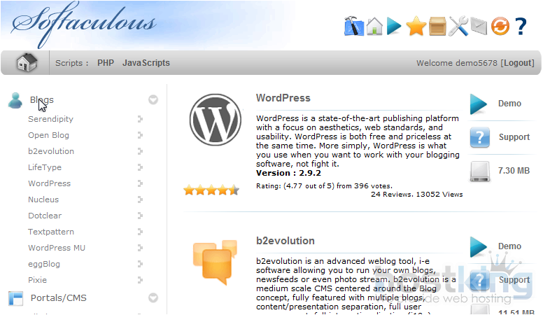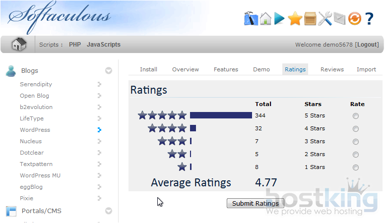Softaculous contains both a rating system and demos of each software included.
