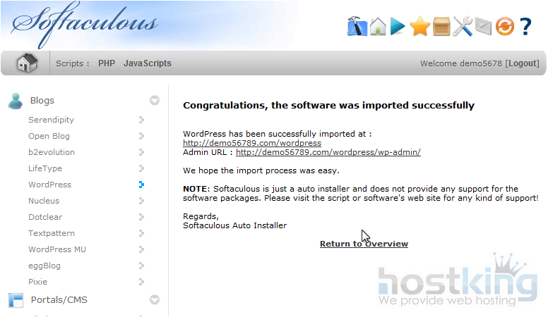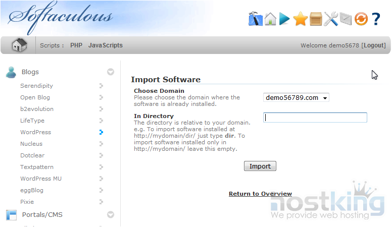 If you already have one of the scripts in Softaculous installed, you can import it so it can be managed within Softaculous.