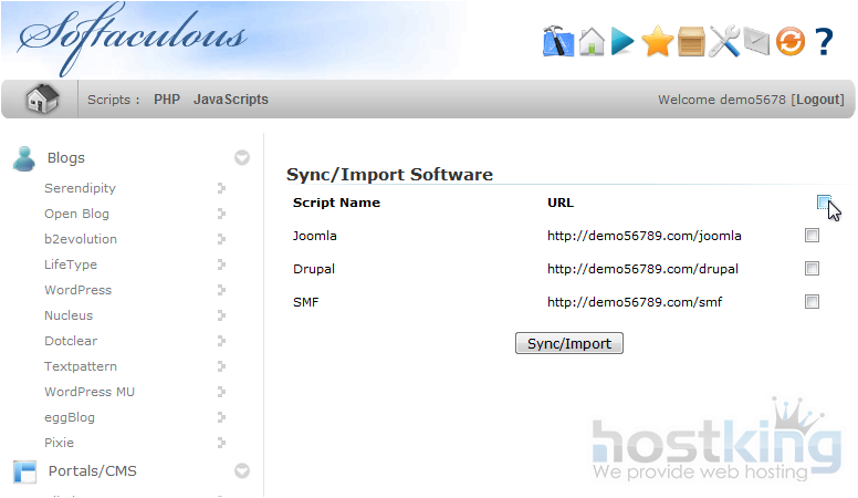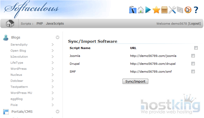 If you've previously installed any of the scripts in Softaculous manually or using another auto installer, you can synchronize them to work with Softaculous.