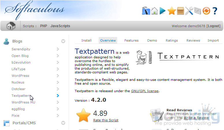 This demonstration will show you how to install Textpattern from Softaculous.