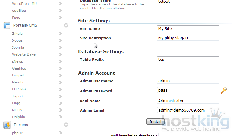 The next two boxes let you set the directory and database name which will be created upon installation.