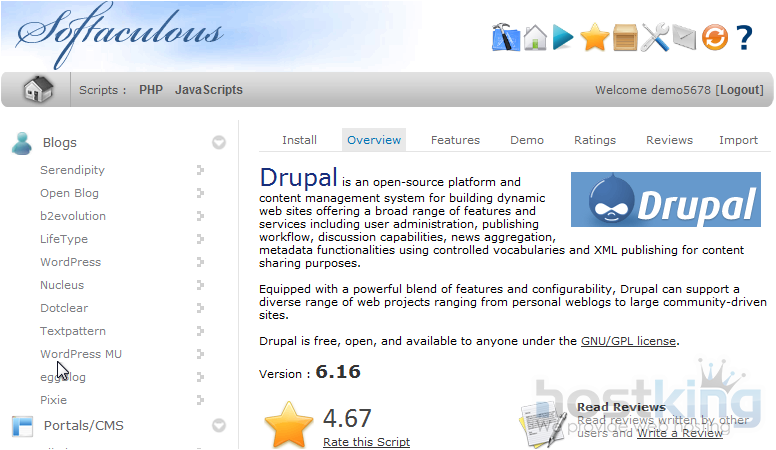 Drupal is a content management system, so scroll down to the CMS group in the menu.