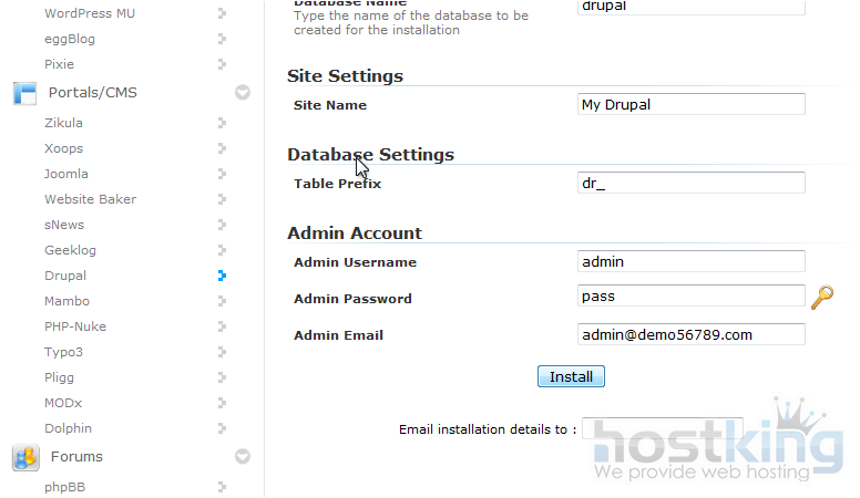 The next two boxes let you set the directory and database name which will be created upon installation.