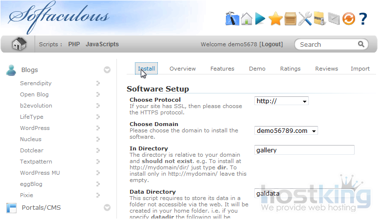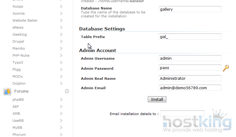 If you have multiple domains on your account, you can choose where to install Gallery.