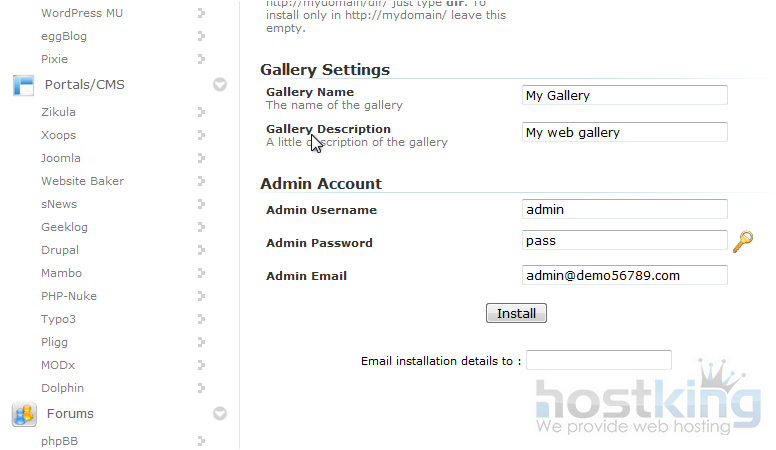 Under Gallery Settings, enter a Gallery Name and Description. These can be changed later on from the application's admin panel.