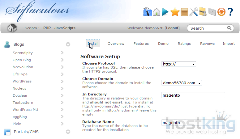 If you have multiple domains on one account, you can select where to install.