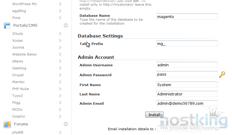 The next two boxes let you set the directory and database name which will be created upon installation.