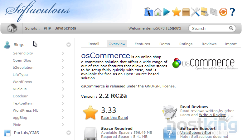 osCommerce is a shopping cart software, so scroll down until you find the E-Commerce group.