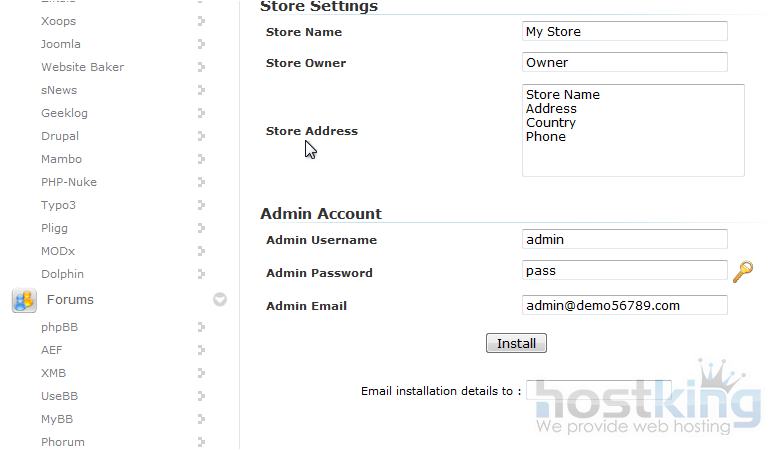 Enter the admin username, password and email.