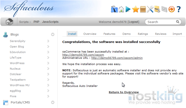 1) Click osCommerce.