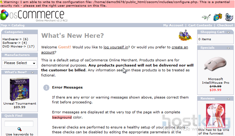 Here is our new installation of osCommerce, which is ready to be used.