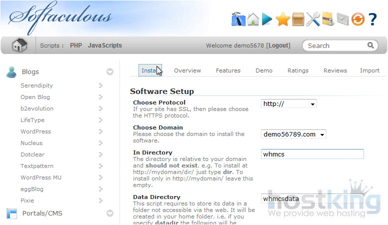 2) Click WHMCS.