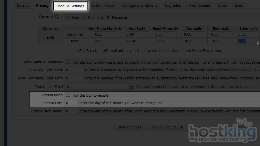 17) Then, fill in the setup fees if you want to and prices for every payment period under every currency. Note that a value of -1 will disable any of these payment terms.