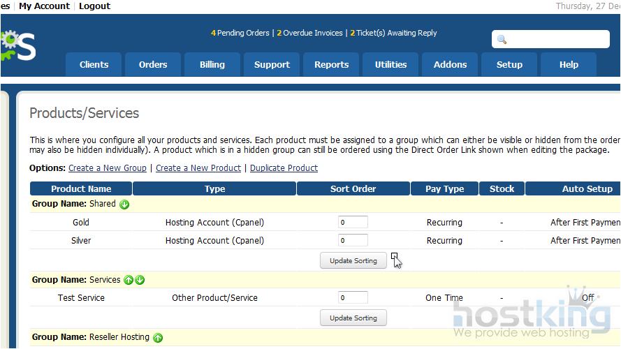 After completing all the previous tutorials, you're finally ready to begin adding your products and services to WHMCS.