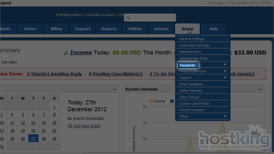 This tutorial assumes you've already logged in to your WHMCS admin panel.