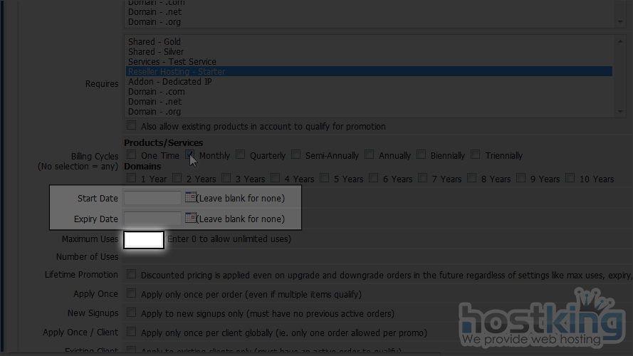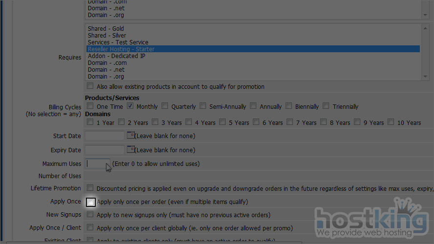 11) WHMCS 5 also allow you to set which item require to qualify for this promotion.