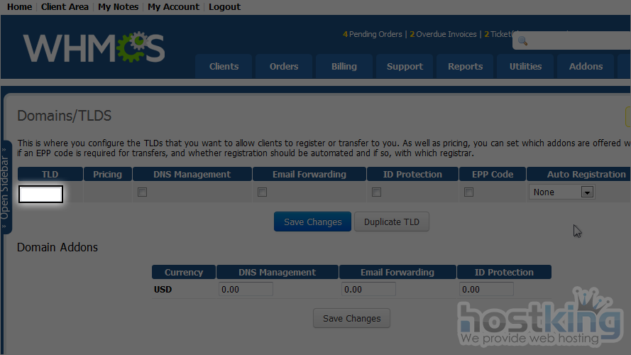 With WHMCS, you can set the prices of each top-level domain you want to sell. You can also set it up to work with many different domain registrars.