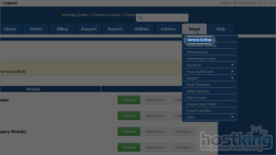 This tutorial assumes you've already logged in to your WHMCS admin panel.