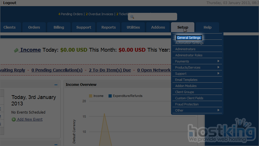 This tutorial assumes you've already logged in to your WHMCS admin panel.