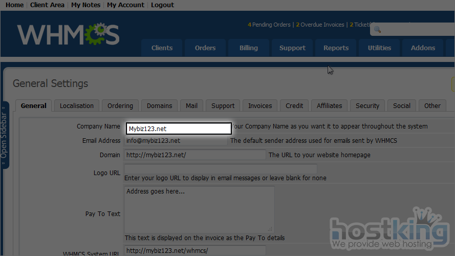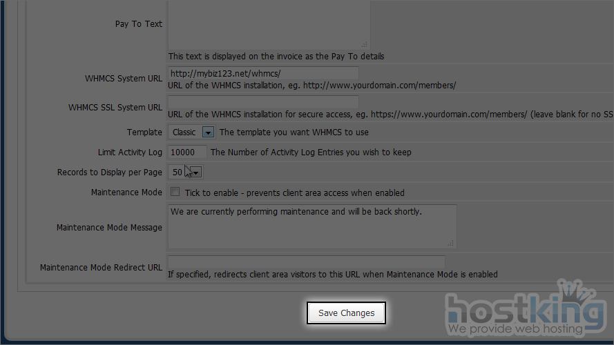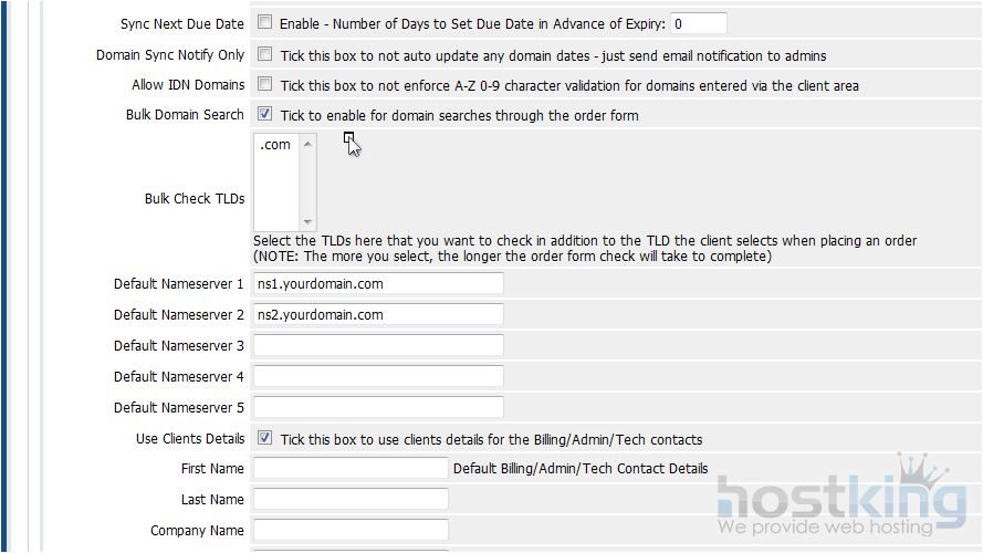 As you can see, you can set default name servers, and default client details. After you all done, go scroll top.