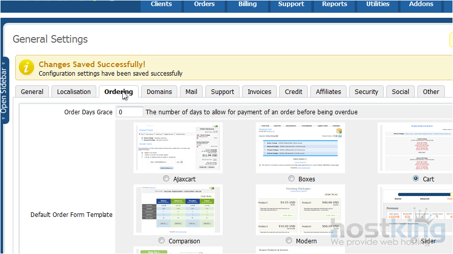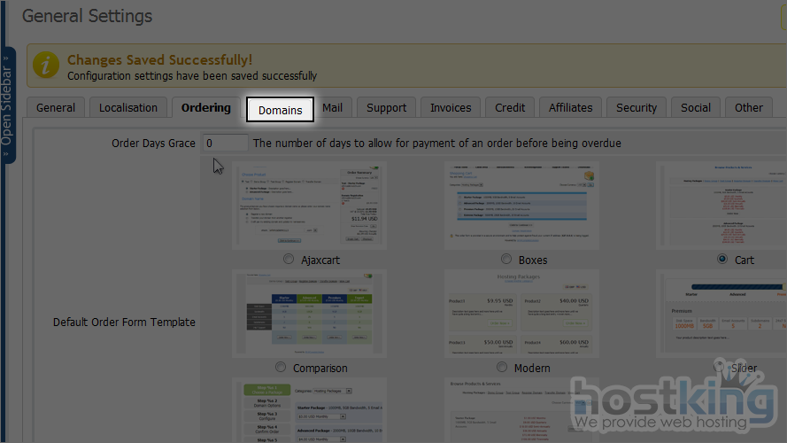 This is where you can change your ordering options. If you dislike the default order form template, try them all until you find the one you like the best.