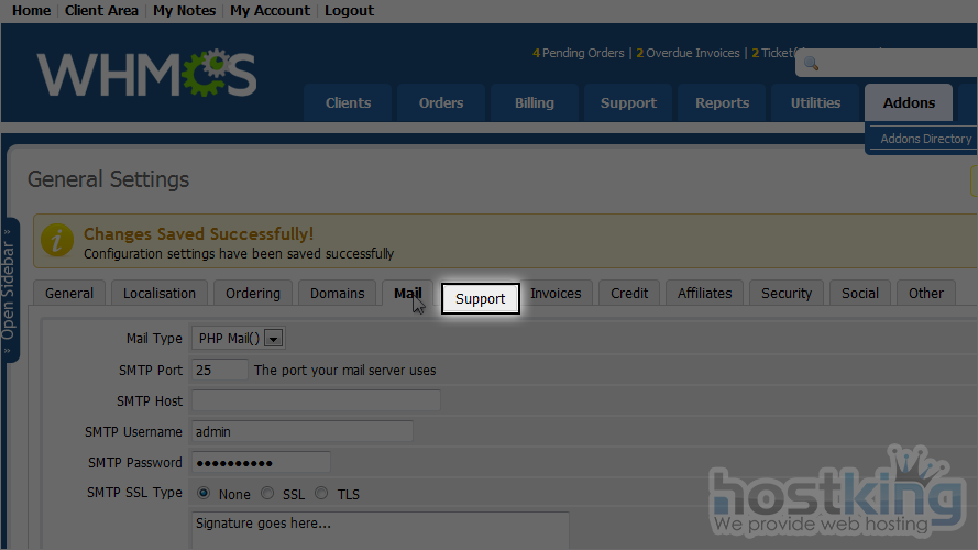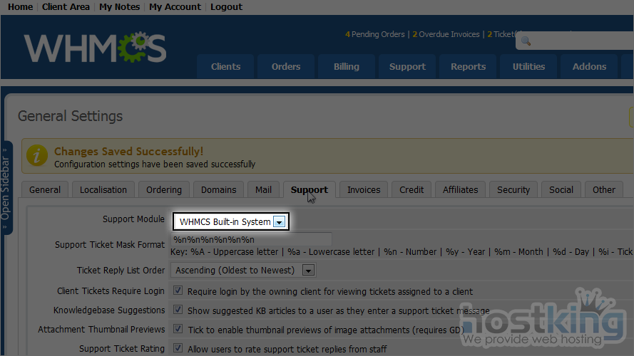 WHMCS allows you to install support modules that integrate it with a standalone support solution such as Kayako. This is where you choose the support module you wish to use.