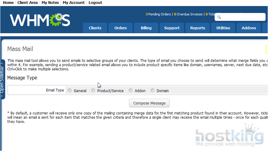 This tutorial assumes you've already logged in to your WHMCS admin panel.