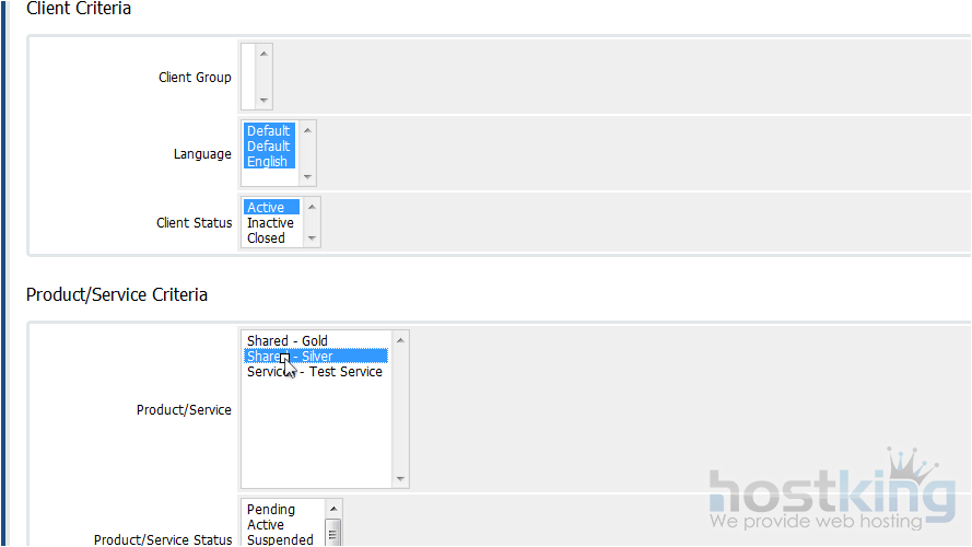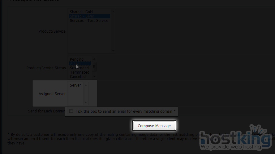 7) If you have multiple server setup and want to limit the email to a single server, select it from the list here.